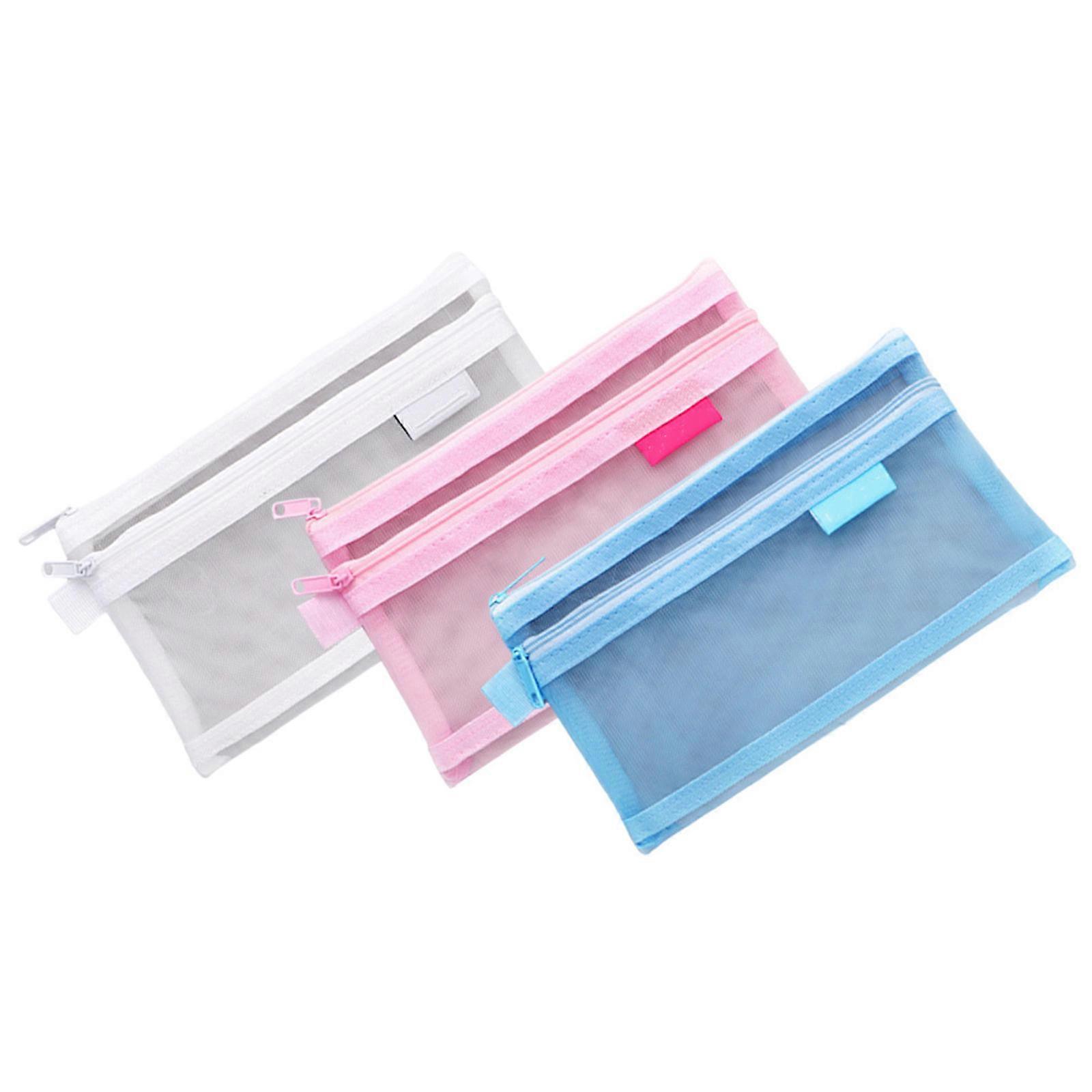 Stationery Storage Bag Pencil Pouch Daily Study Rectangular Nylon 20.5X12CM 3Pcs