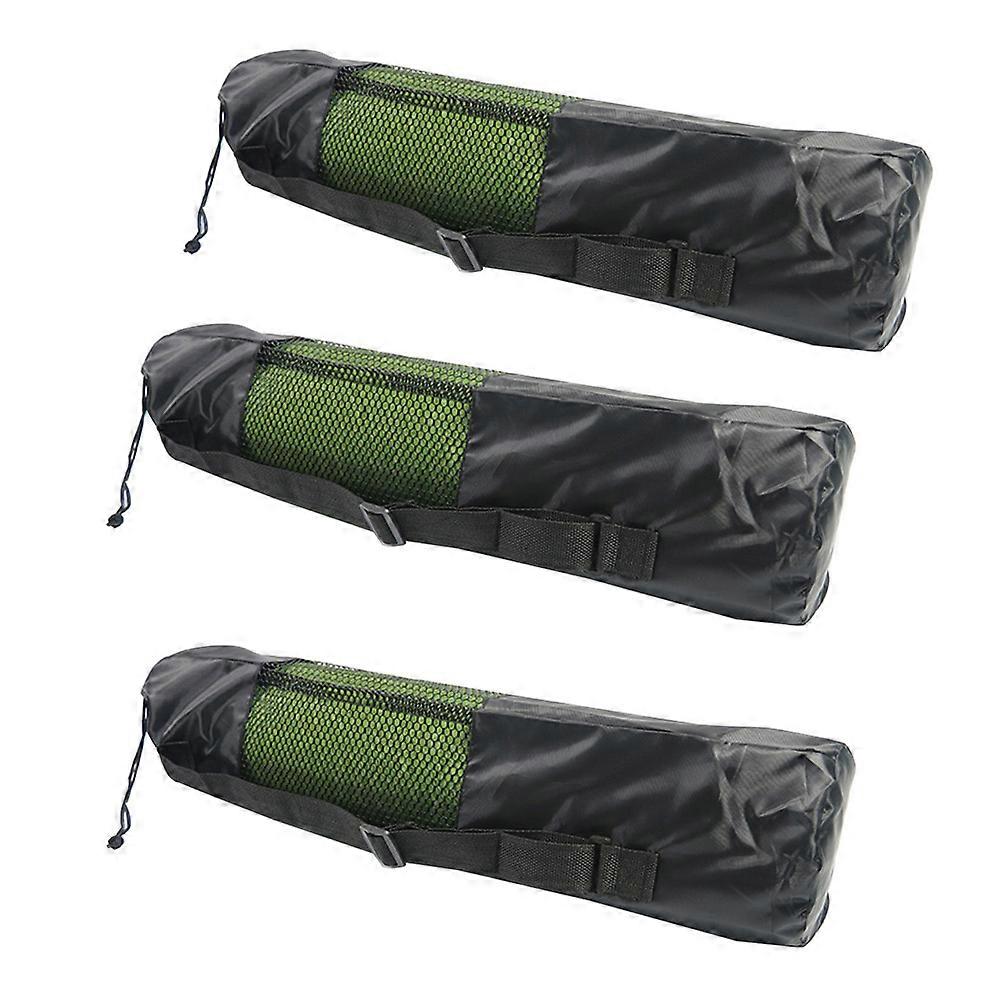 Yoga Mat Storage Bag Large Capacity Half Mesh Design Adjustable Sling Shoulder Strap Black 3Pcs