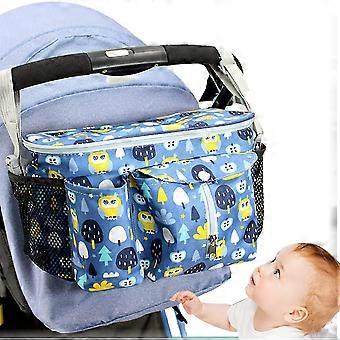 حقيبة تخزين عربة الأطفال، منظم عربة أطفال مع حامل أكواب وحزام كتف، حقيبة عربة أطفال للألعاب، حفاضات (أزرق)