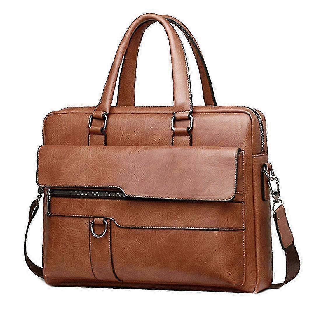 Men's Leather Briefcase Business Laptop Bag Travel Satchel Bag Messenger Bag for Men (Light Brown)