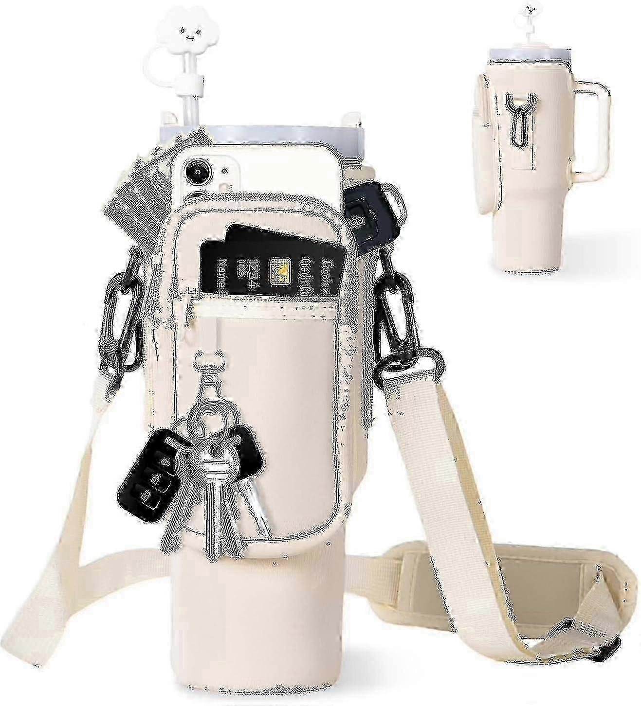 Water Bottle Carrier Bag With Phone Pocket For 40/30 Oz Tumblers Neoprene Water Bottle Holder Pouch With Adjustable Strap