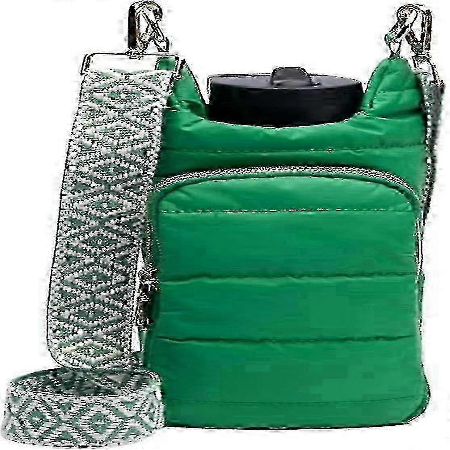 Puffer Water Bottle Carrier Bag, Insulated Crossbody Water Bottle Holder with Strap and Sling for Hiking Travel