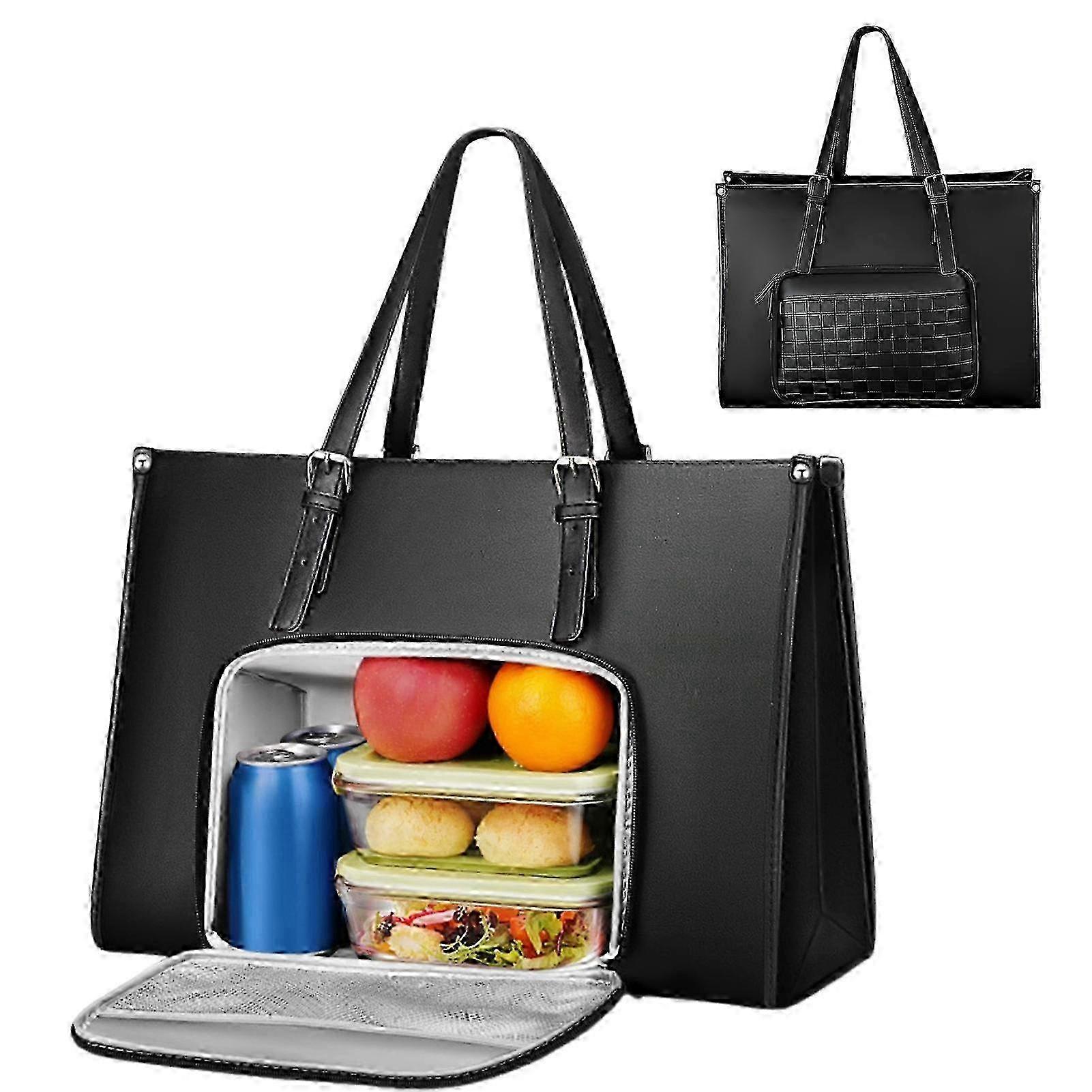 Laptop Tote Bag with Insulated Lunch Compartment, 15.6 Inch PU Leather Briefcase with 2-in-1 Leakproof Lunch Box Pocket for Women