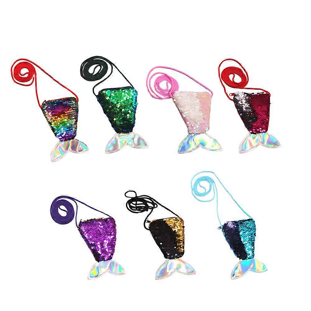 Mermaid Bag Crossbody Pouch Sequins Shoulder Bag for Girls Small Size Mixed Color 7Pcs