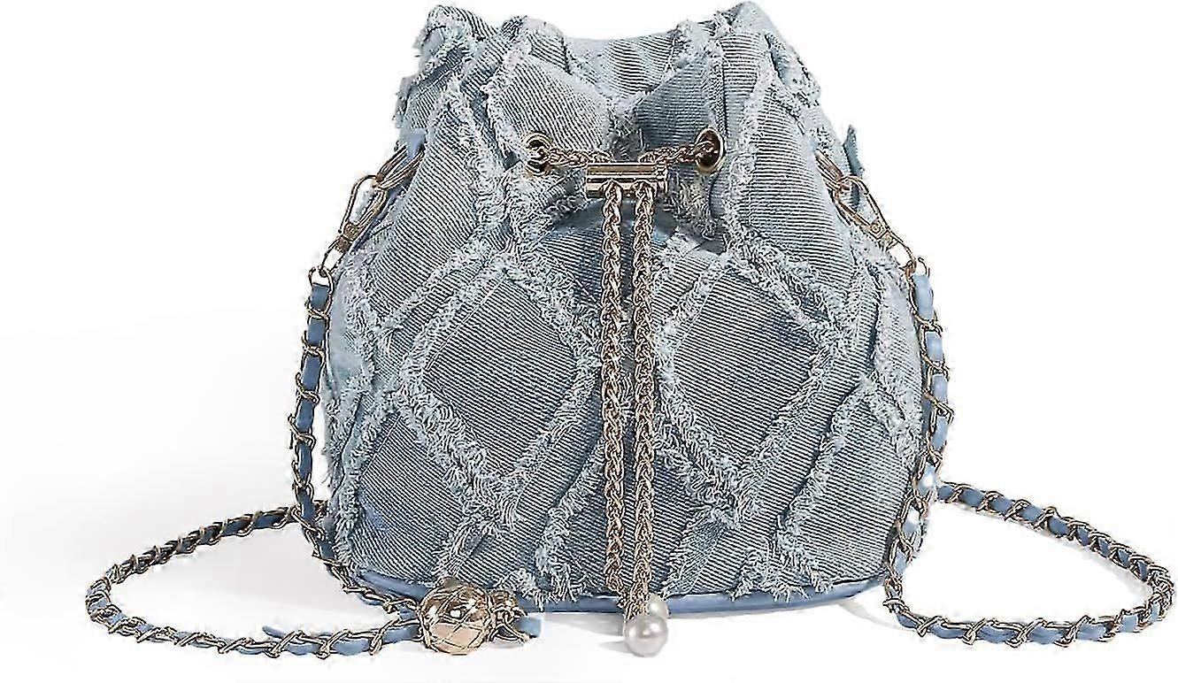 Denim Bucket Bag Quilted Jean Drawstring Purse Y2K Hobo Crossbody Clutch Handbag For Women
