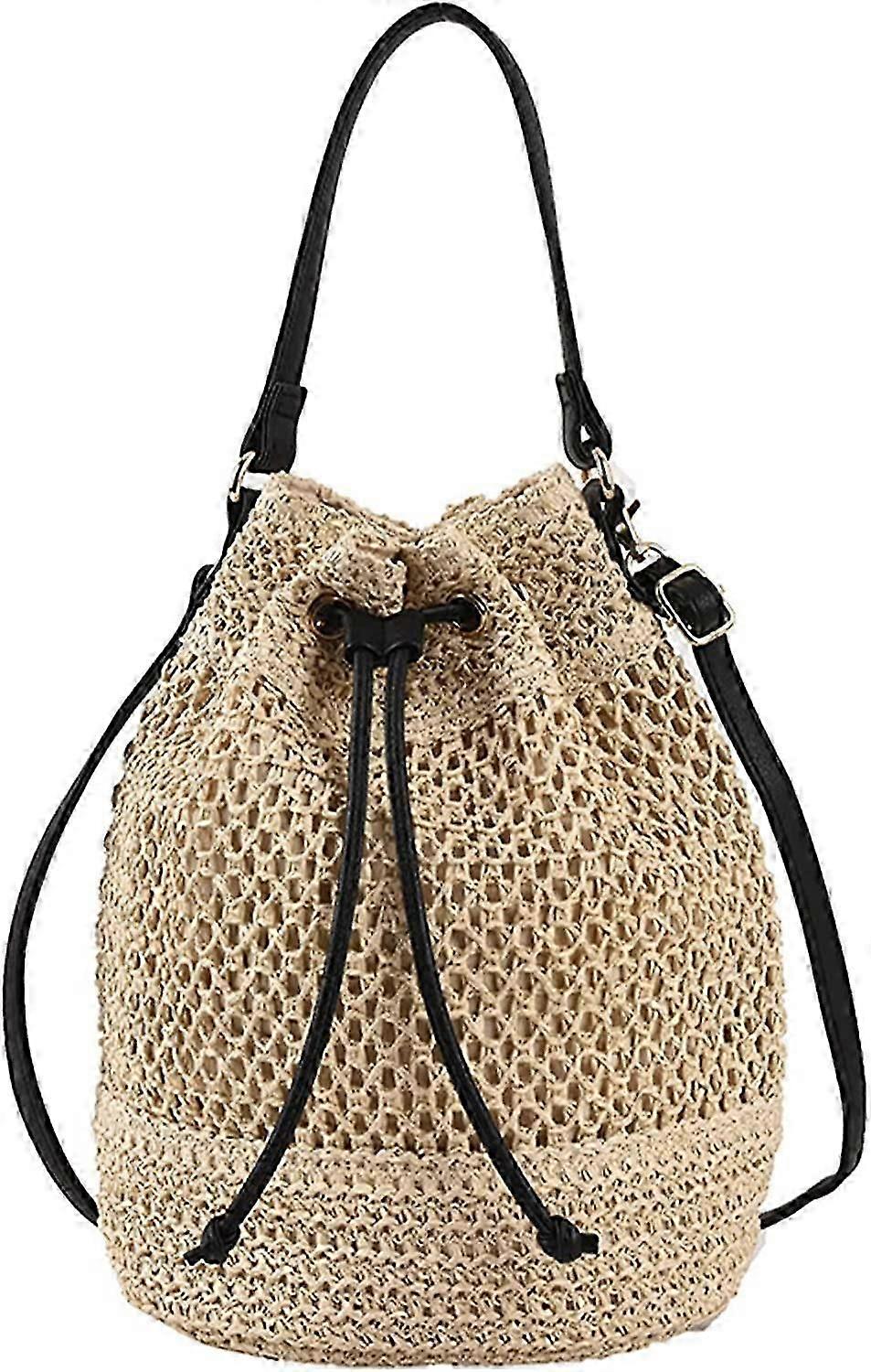 straw FRIENDLY MATERIAL: The straw bucket bag is made of high-quality straws, which are eco-friendly, soft and skin-friendly, perfect travel accessories for your summer vacation and travel! SIZE AND CAPACITY: The size of this straw bag is upper width 12cm/4.72in, lower width 28cm/11.02in, thickness 14cm/5.51in, height 30cm/11.81in,, which is convenient for you to store your mobile phone, wallet, sunscreen, glasses, cosmetics, skin care products and other travel essentials! STYLISH DESIGN: This straw purses for women adopts straw style, bucket shape, drawstring opening and closing, convenient, simple and elegant, cute and fashionable! MULTI-PURPOSE: The bucket purse comes with a 126cm/49.6in adjustable long shoulder strap, can be used as a shoulder bag, handbag, crossbody bag, and can complement your summer outfits or accessories like skirts, swimwear, sunglasses, straw hats, etc. WIDE APPLICATION: This bucket bag for women is perfect for beach, pool, party, shopping, dating and other occasions, a perfect gift for your lover, sister, daughter or even yourself. Large capacity