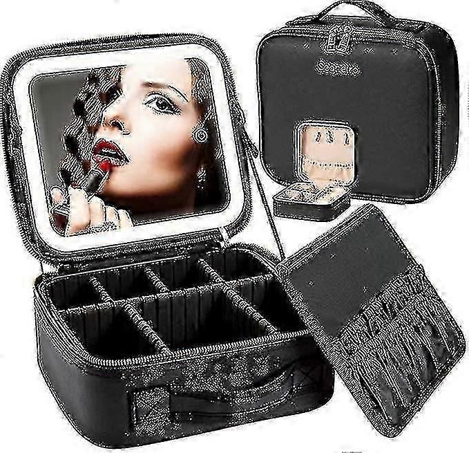 Makeup Travel Bag With Led Lighted Mirror Adjustable Brightness Portable Waterproof Makeup Case With