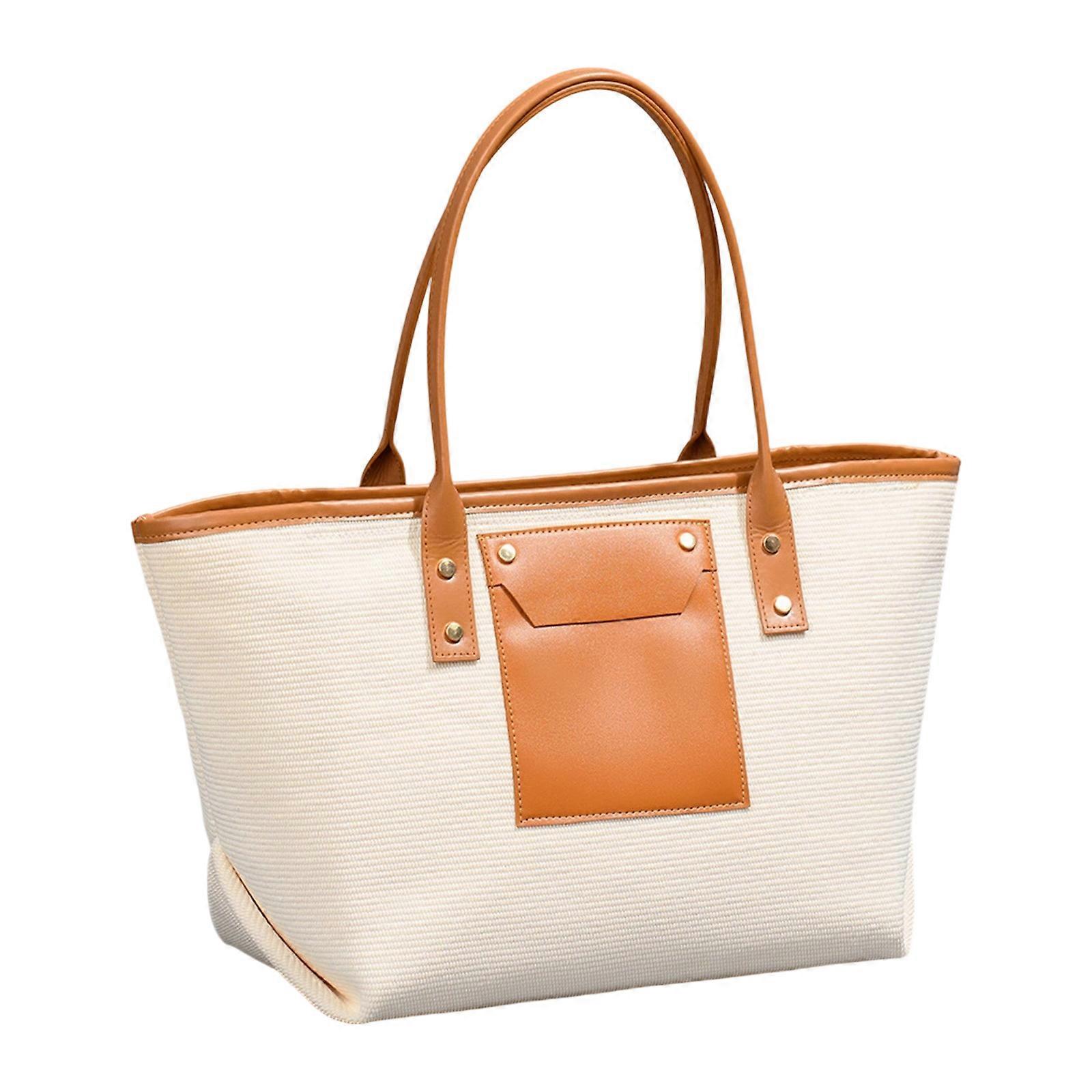 Large Woven Beach Bag With PU Leather Trim Design Vacation Handbag Top Handle Purse Shoulder Bag For Swimming Travel Gym White