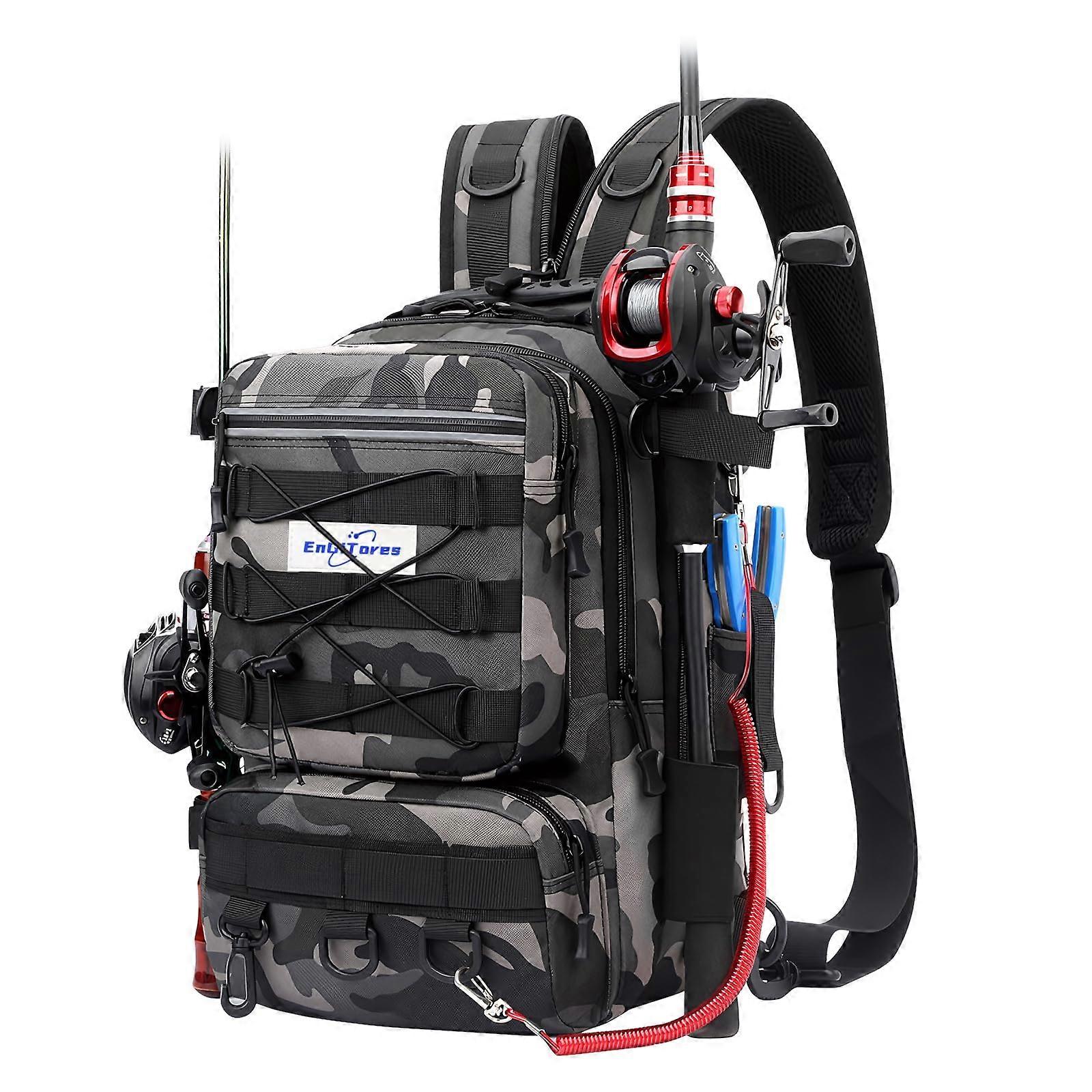 Fishing Backpack With Rod Holder, Waterproof Tackle Bag, 20L Outdoor Rucksack For Fishing, Camping, Hiking, One Size