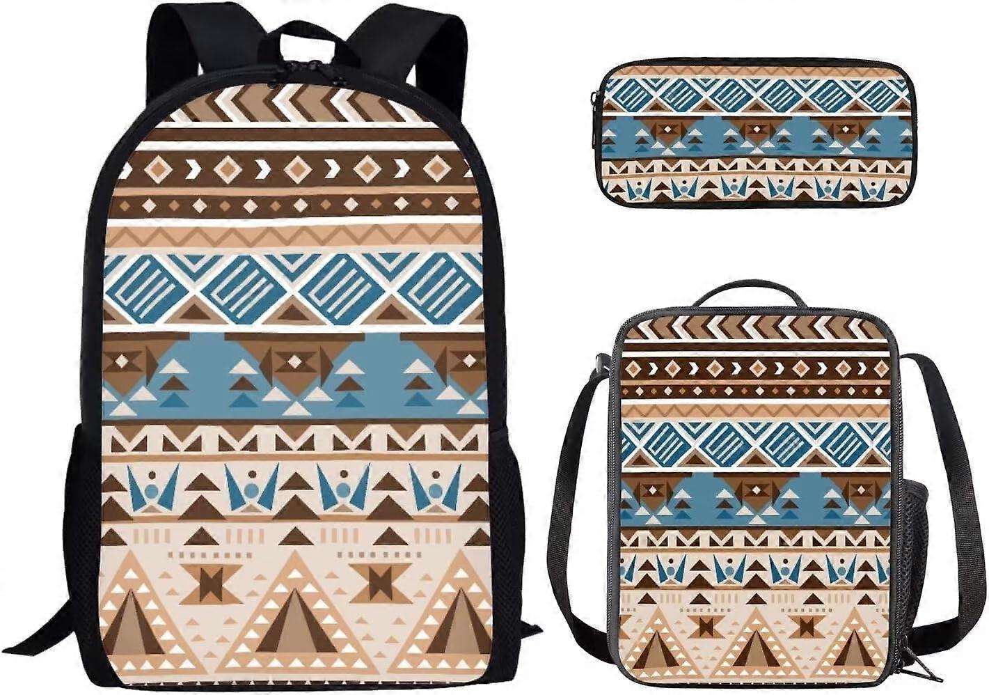 Ethnic Tribal Backpack 3 in 1 Satchel for Elementary and Primary Schoolbag Including Lunch Box and Pencil Case Back to School 17 Inch Bookbag