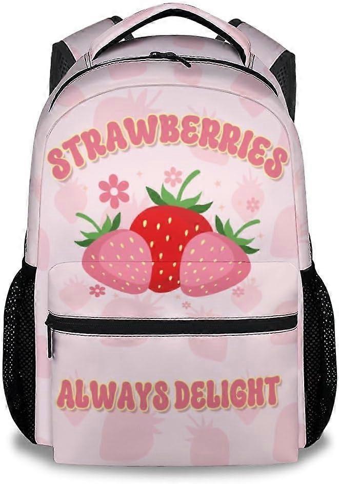 Kid Backpack for Girls - 17 Inch Pink Durable Strawberry Bookbag for School, Travel and Camp - Aesthetic School Backpack with Large Capacity, Lightwei