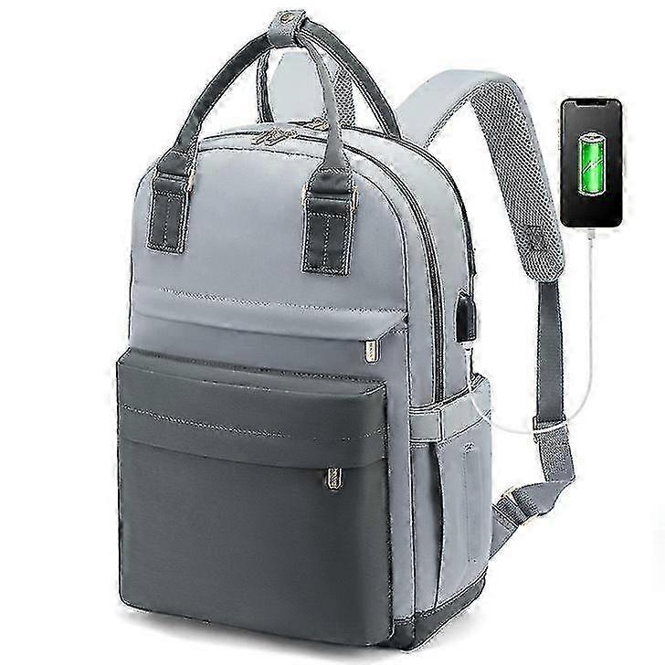 Women's Casual Anti-Theft Backpack with USB Charging for 15.6" Laptop, College Travel Work Bag Grey Blue
