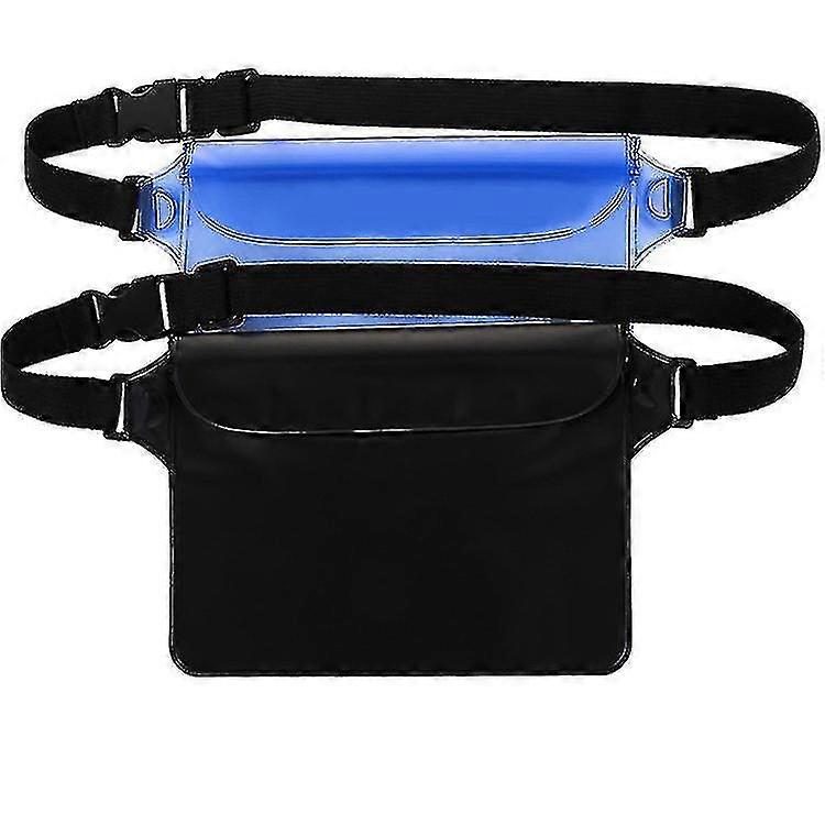 Universal Waterproof Pouch With Waist Strap (2 Pack-blue And Black) For Beach, Swimming, Boating, Fishing, Camping - Protect Your Iphone, Camera, Cash
