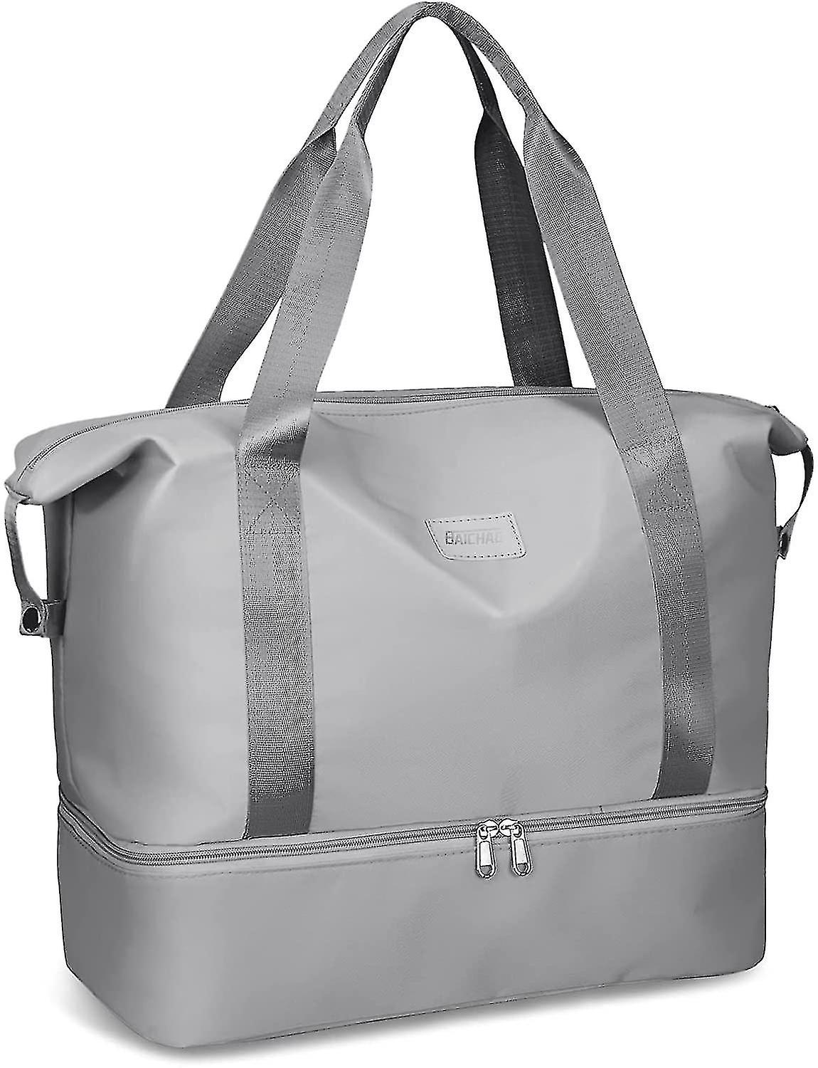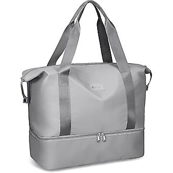 Weekend Bag For Women, 36l Large Travel Duffel Bag, Dry & Wet Seperated Overnight Bag, Waterproof Gy