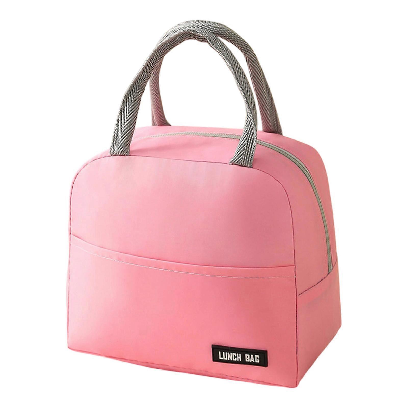 Stylish Insulated Lunch Bag Solid Color Casual Lunch Box Cooling Handbag for School Office or Outdoor Adventures Pink