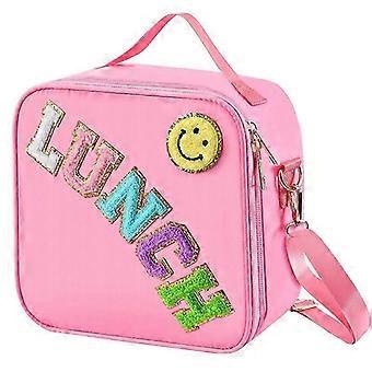 حقيبة غداء معزولة مع حزام كتف قابل للتعديل ، حقيبة معزولة من النايلون Preppy Lunch Box ، حقيبة عزل ديكور من الشنيل للسفر المدرسي
