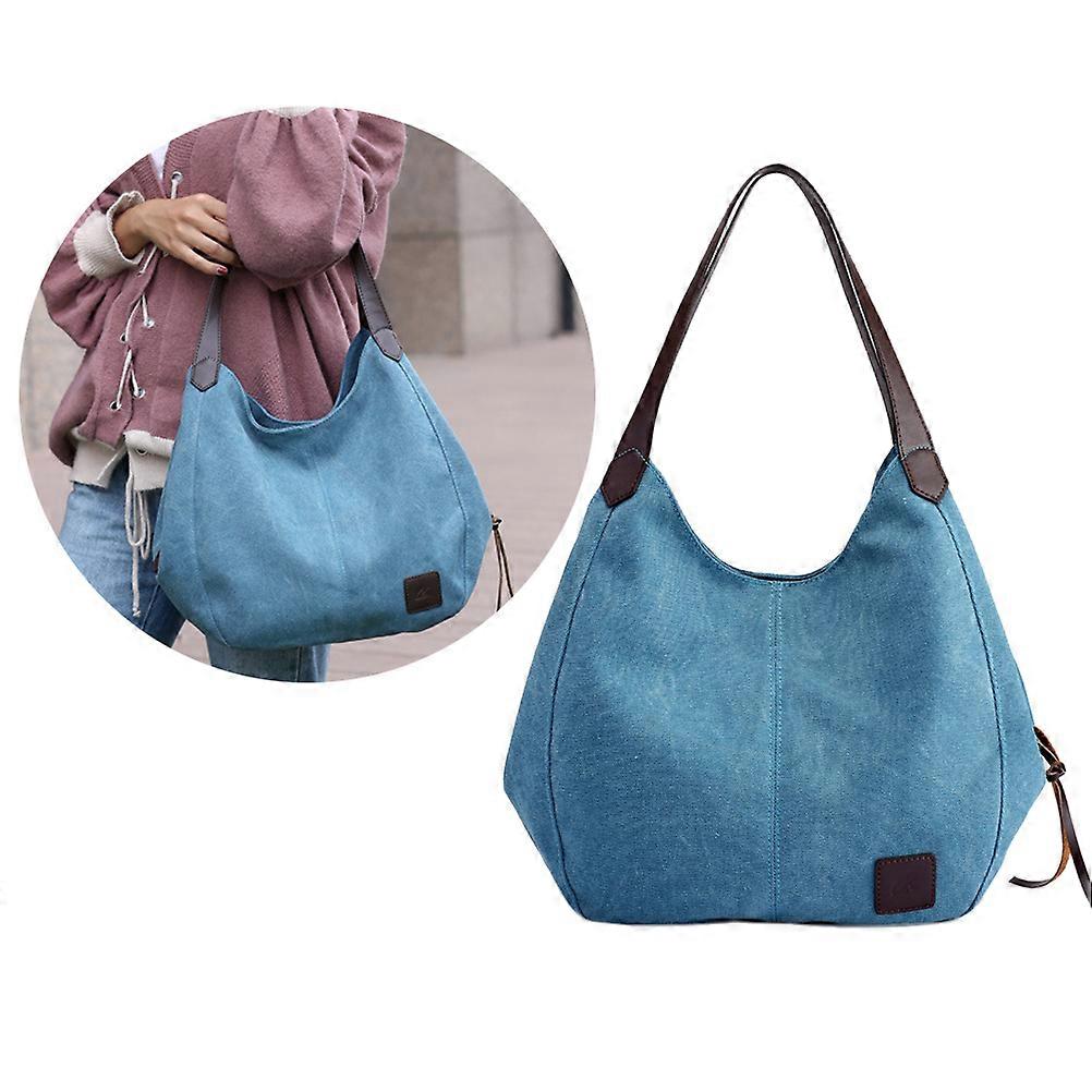 Large Capacity Vintage Canvas Bag For Women Daily Travel Commuter Hasp Closure Blue 1Pcs
