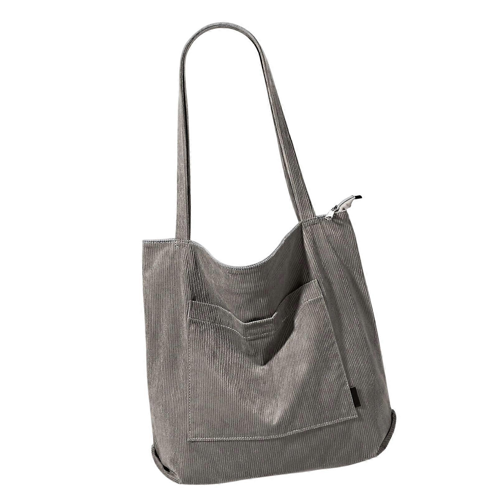 Korean Inspired Corduroy Shoulder Bag Spacious Interior Casual Handbag For Women Combining Fashion And Functionality Gray