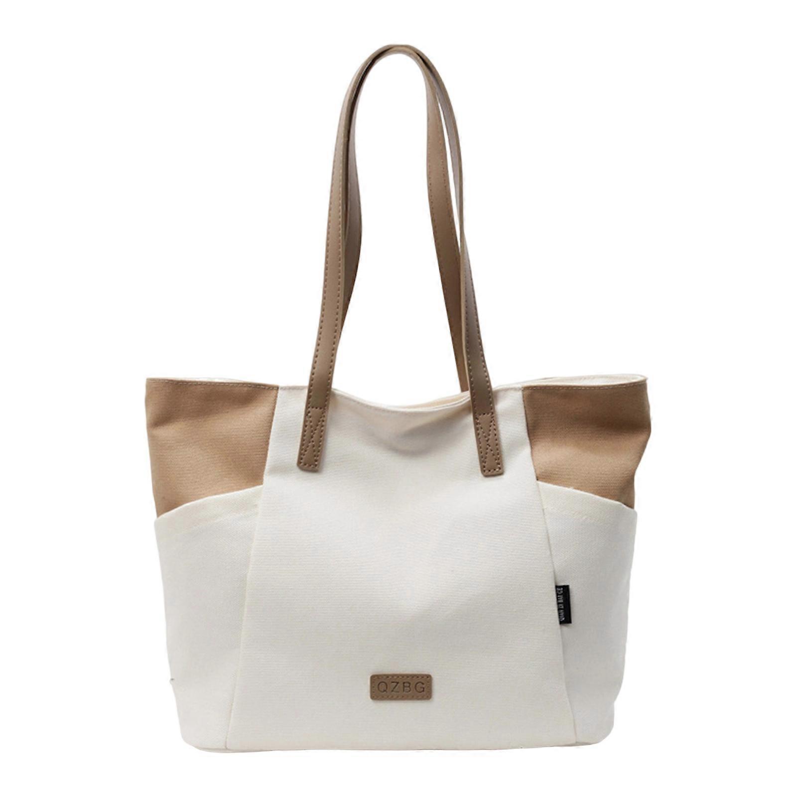 Large Capacity Canvas Shoulder Bag For Daily Commute Comfortable Underarm Bags Casual Handbag For Stylish Women White