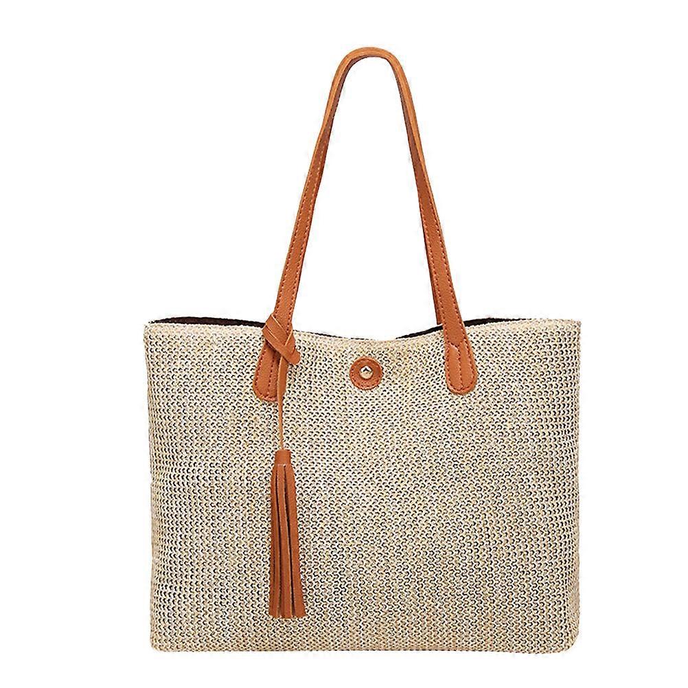 Woven Shoulder Bag Summer Woven Bag Beach Bag For Women Outdoor Travel Orange 36 x 28 x 11cm Storage 1Set