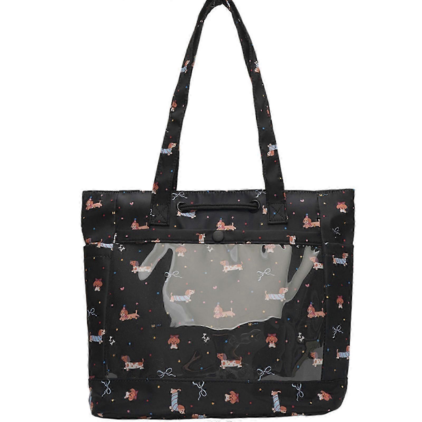 Large Capacity Nylon Shoulder Bag with Cartoon Dog Print College Style Handbag Casual Underarm Bag for Everyday Needs White Cs