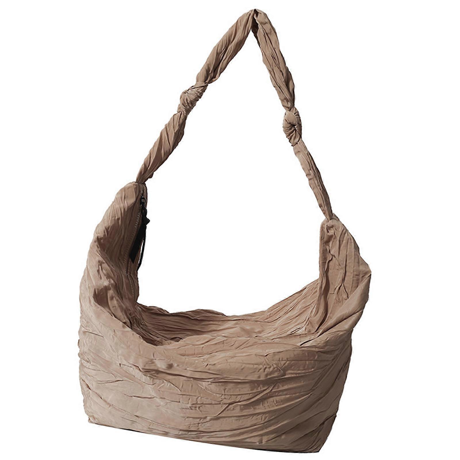 Casual Dumpling Purse Nylon Shoulder Bag for Men and Women Pleated Satchel with Multiple Pockets Party Handbag Khaki