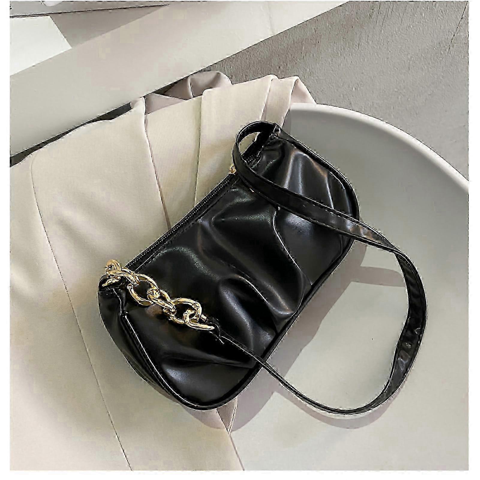 Women Shoulder Bag Large Capacity Smoothing Zipper Soft Polyester Fashionable Cute Handbag Black