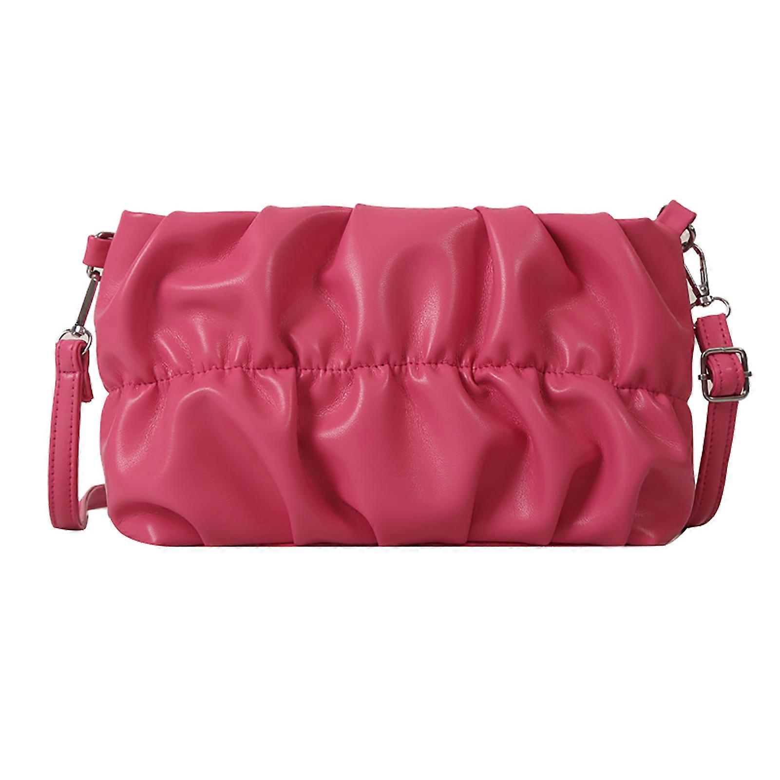 Women Pleated Shoulder Bag Fashionable Causal Pure Color PU Leather Messenger Bag for Daily Travel Party Work Dating Rose Pink Free Size