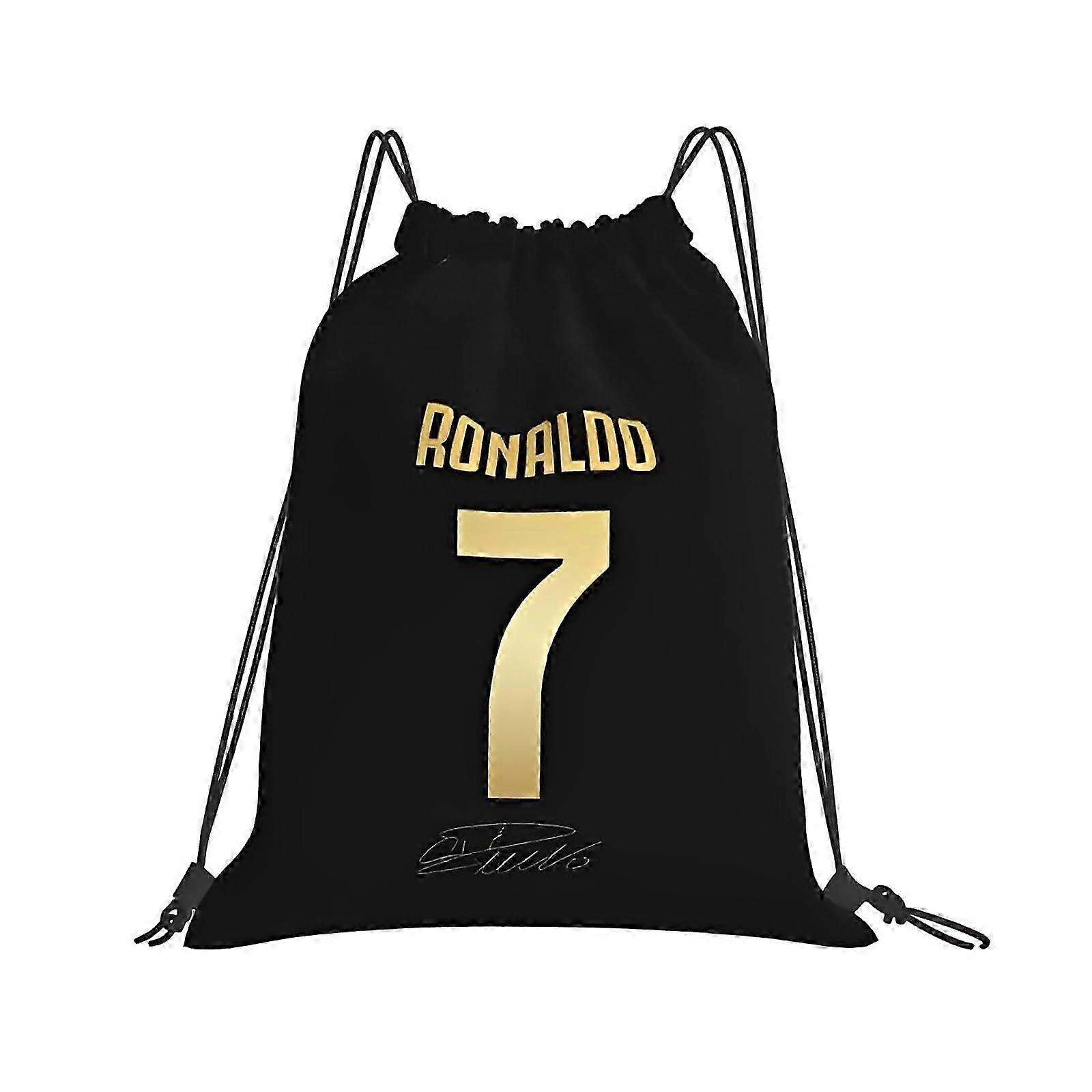 Football Drawstring Bag Number 7 Ronaldo Kit, Black Medium Backpack for Boys, Multi-Use Sports, Gym, Beach, Lunch