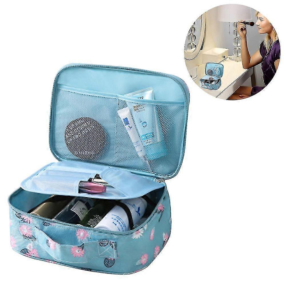 Travel Makeup Bag Large Cosmetic Bag Makeup Case Organizer For Women And Girls (large, Blue Peony)