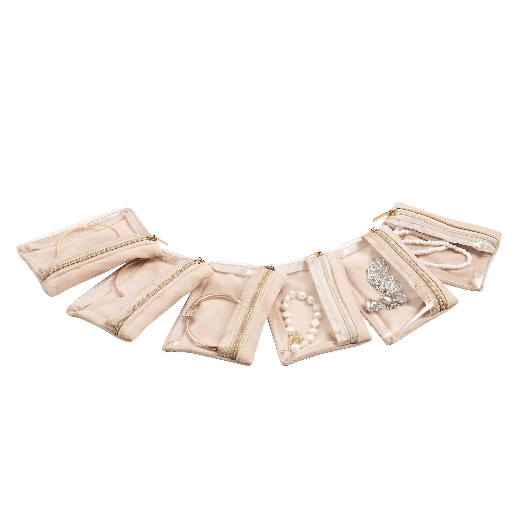 Velvet Travel Jewelry Bag 6-Piece Set With Zipper Pocket Visualization Design Travel Jewelry Organizer