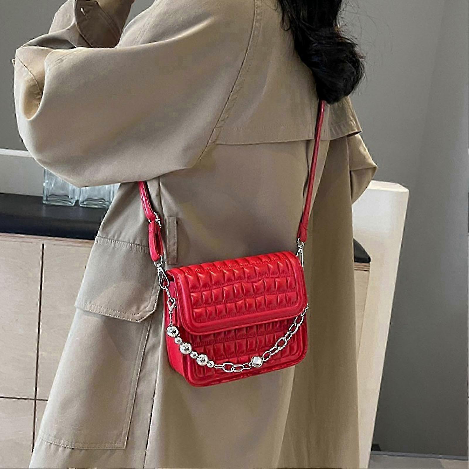 Small Square Bag Women Single Shoulder Messenger Stylish Texture with Zipper Chain Decoration Red Free Size
