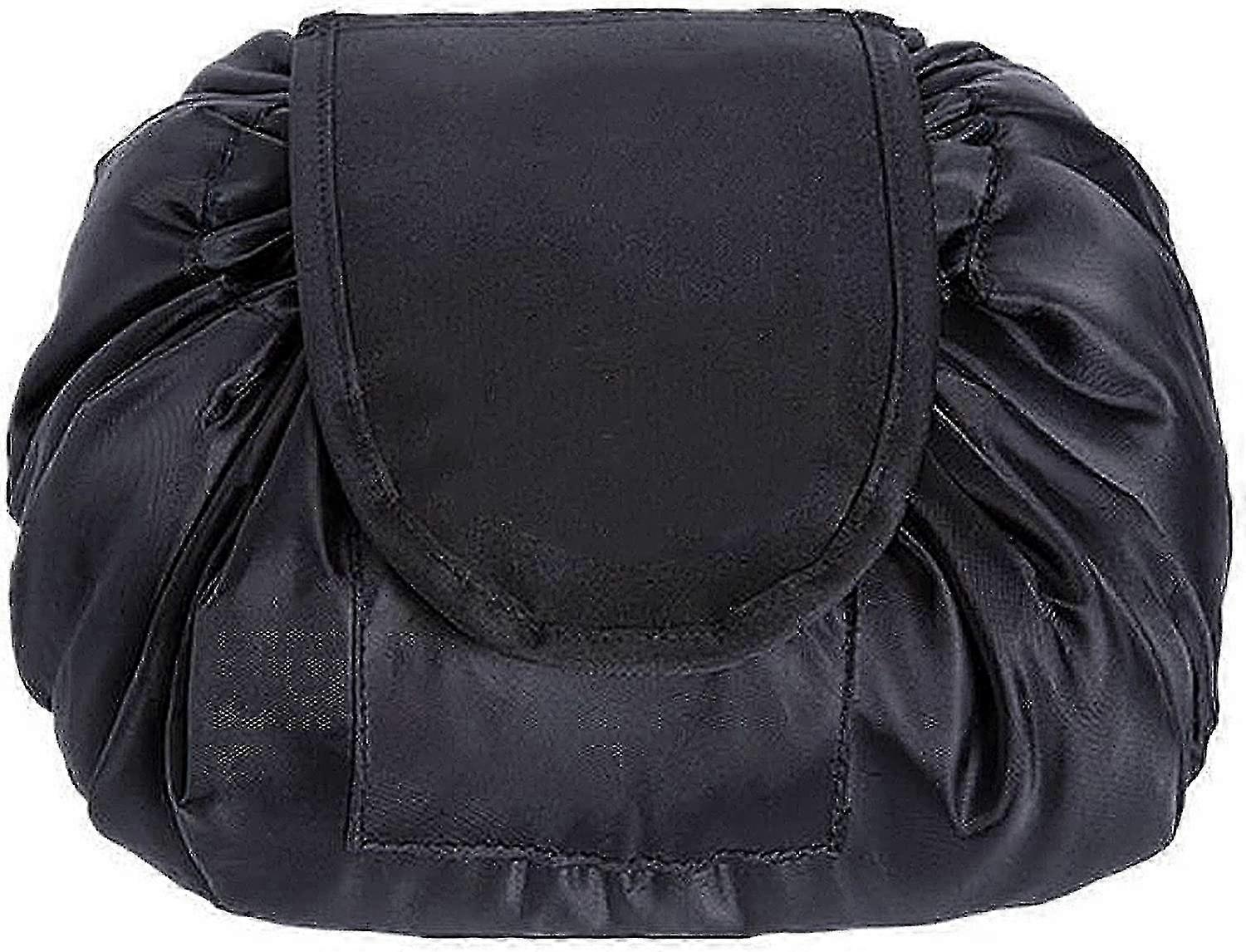 Cosmetic Bag, (Black) Makeup Bag, Drawstring Design One Step Organizer, Cosmetic Pouch for Lazy Women