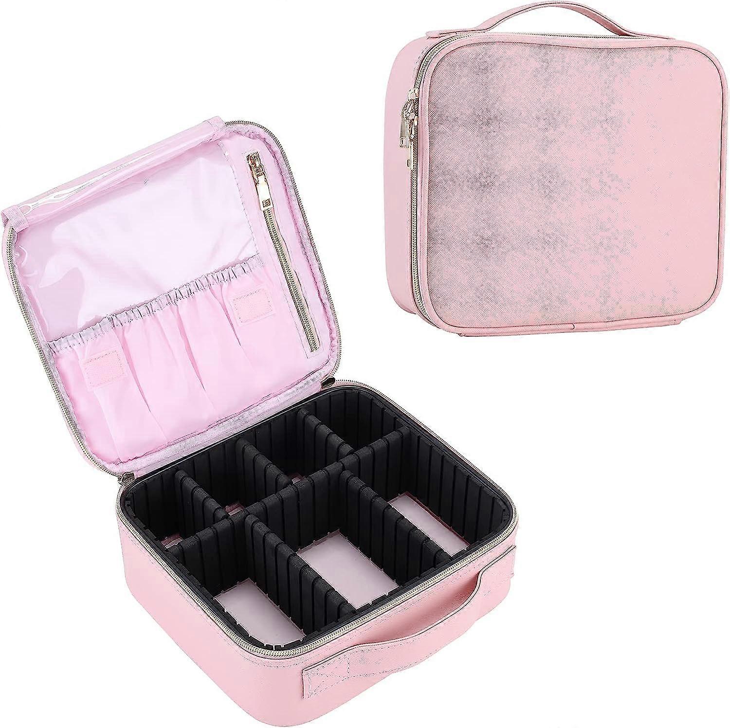 Pink PU Leather Cosmetic Bag with Large Capacity and Adjustable Dividers - Organize Your Makeup in Style!