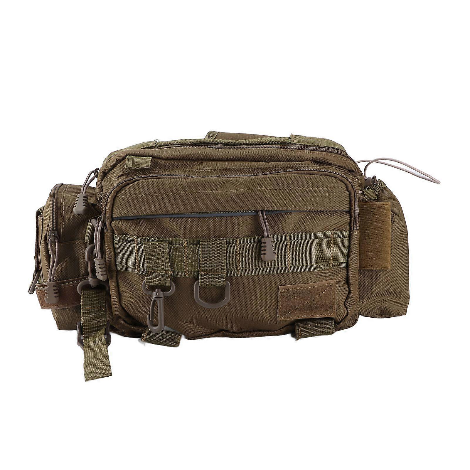 Fishing Tackle Bag Nylon 600D Fishing Gear Sling Pack with Waist Belt for Outdoor CyclingKhaki