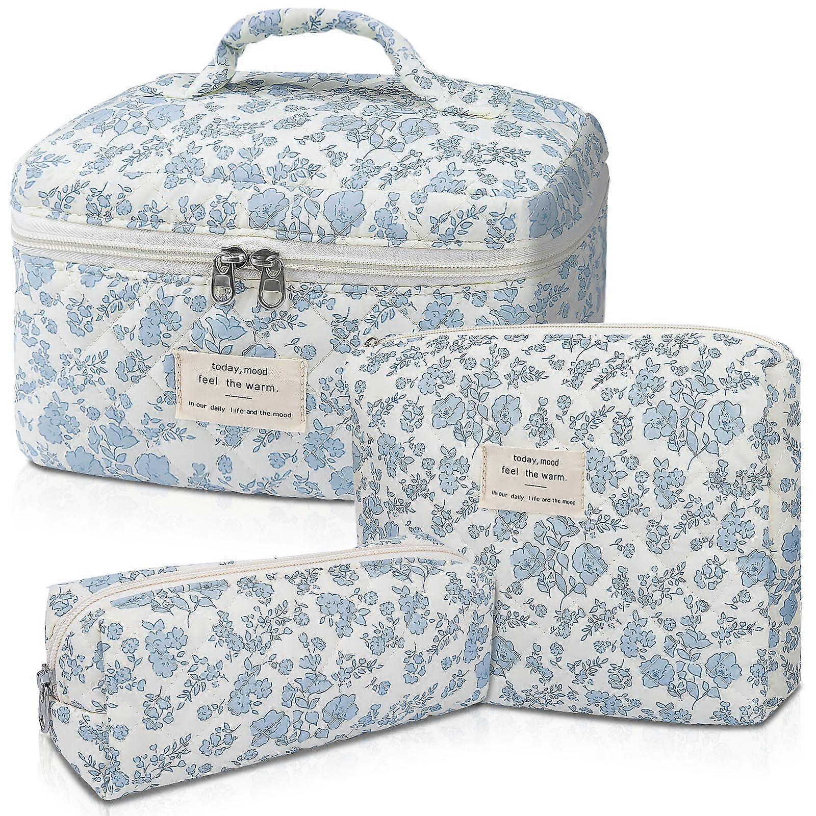 Makeup Bag, Large Quilted Cosmetic Bag, Big Floral Make Up Bag for Women , Cute Cotton Makeup Bag Set, Flower Travel Toiletry Organizer Bag BDLH