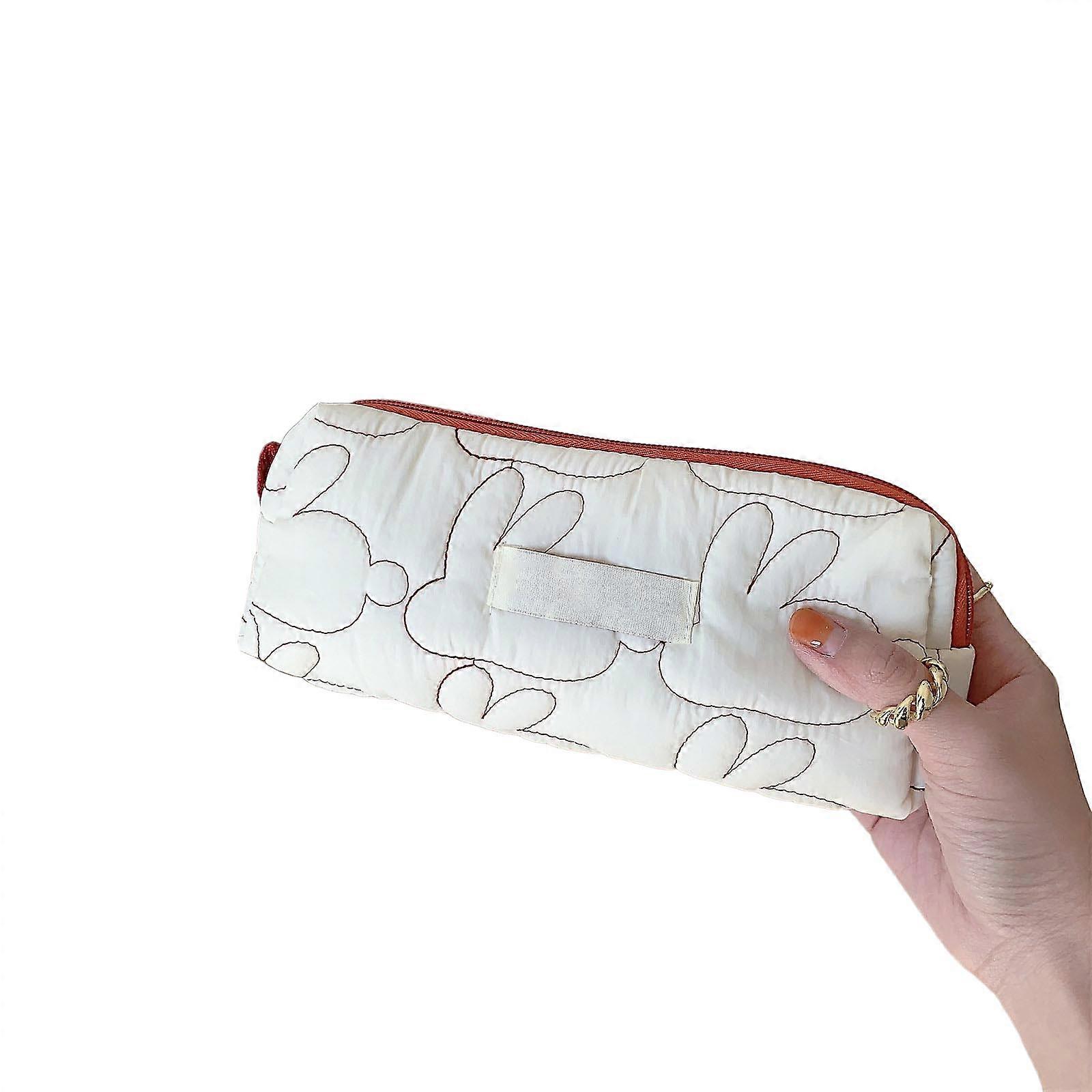 Travel Makeup Bag for Women Quilting Cosmetic Bag Female Zippers Cosmetic Organizer Bag Cute Rabbit Toiletry Bag White