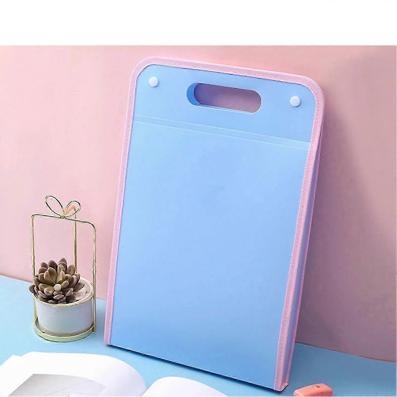 Organ File Bag Portable Large Capacity 13 Layer Classification A4 Double Buckle Expanding File Folder for Test Paper Light Blue Vertical 40x26.3x3cm