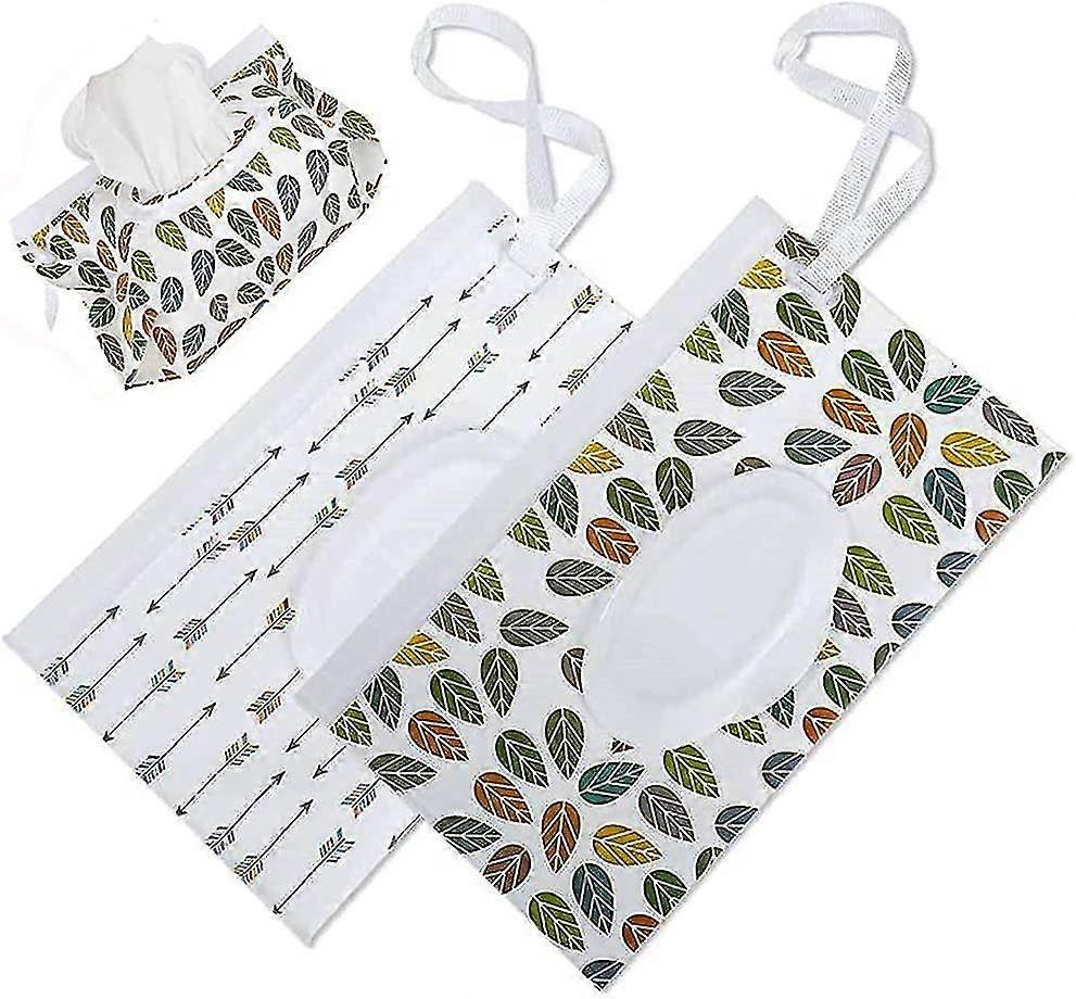 Wet Wipe Pouch, Reusable Baby Wipes Case Refillable Wipes Dispenser Container Wipes Bag For Baby And Adultwhite, Green2 Pcs