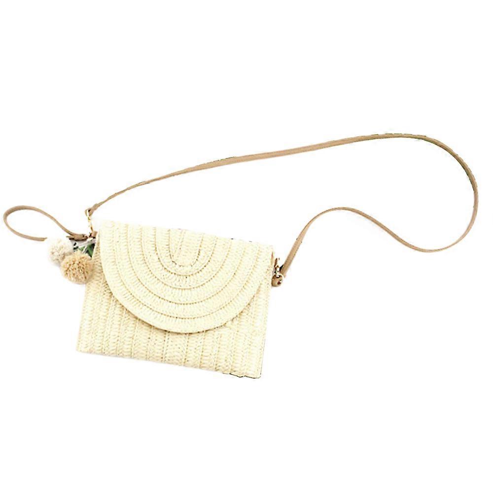 Hand-Woven Bag Beige Fringe Women Straw Bag Crossbody for Everyday Use Young Teenager Girls 1Pack