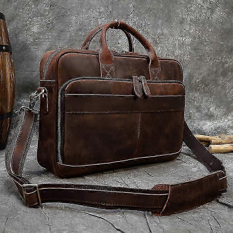 Briefcase Of Men Genuine Leather Cowskin Business Bag 15.6" Computer Bag Crazy Horse Leather Male Bags Soft Thick Leather