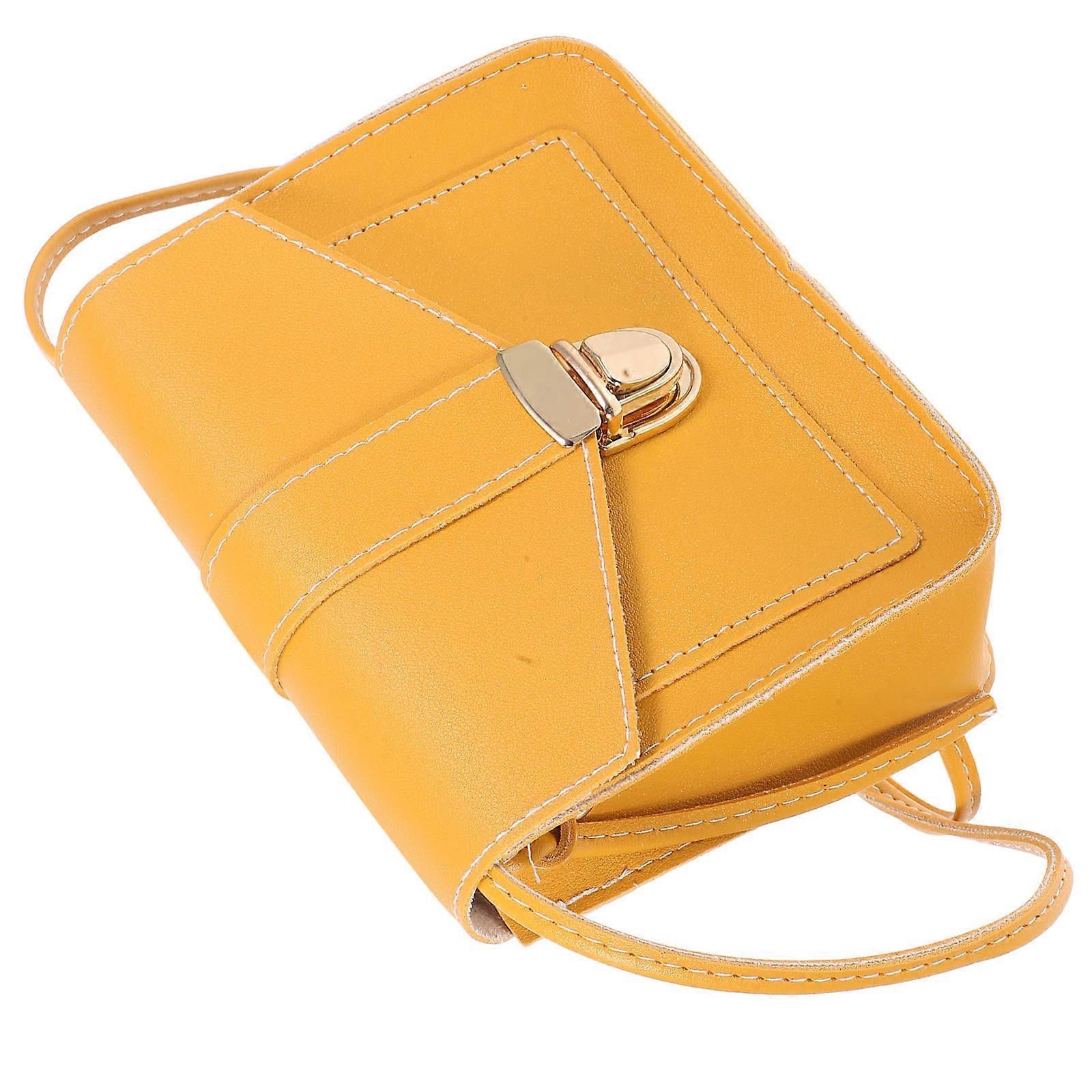 Women PU Cell Phone Bag Simple Small Square Shoulder Bag Cross Body 1 Set Yellow