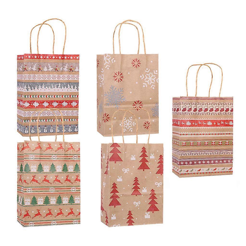 Christmas Gift Bag with Handle Tote Paper Bags 12pcs Printing Wrapping Bags for Xmas Party Guest Favor Candy Cookie