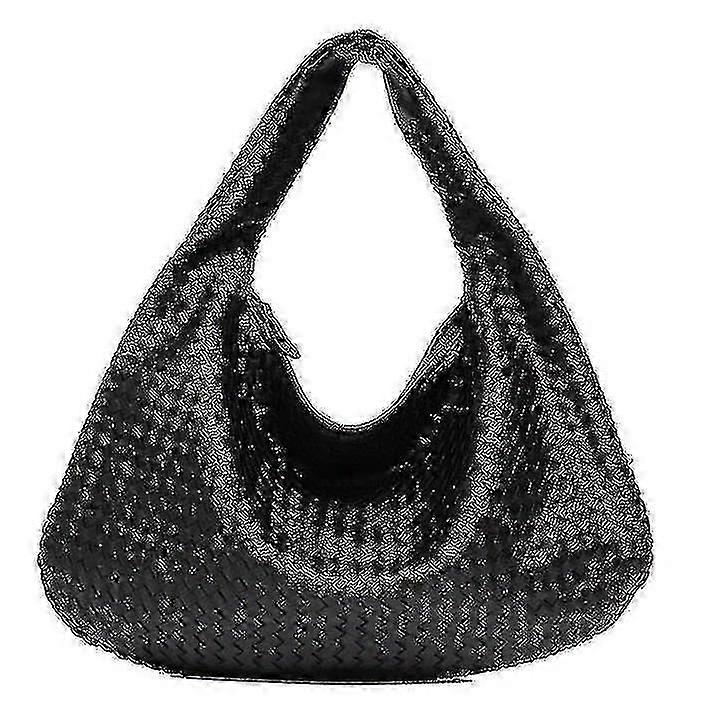 Leather Hobo Bag Handmade Woven Casual Female Handbag Big Capacity Patchwork Zipper Women Shoulder