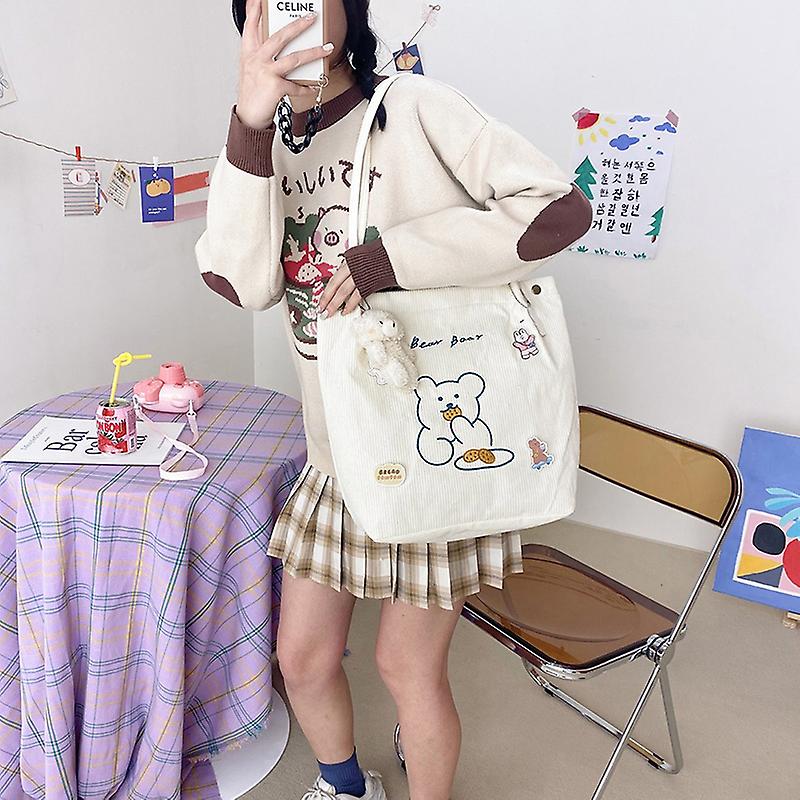 Bag Japanese Corduroy Bear Shoulder Bag Women Cross Body Bag Animal Storage Bag