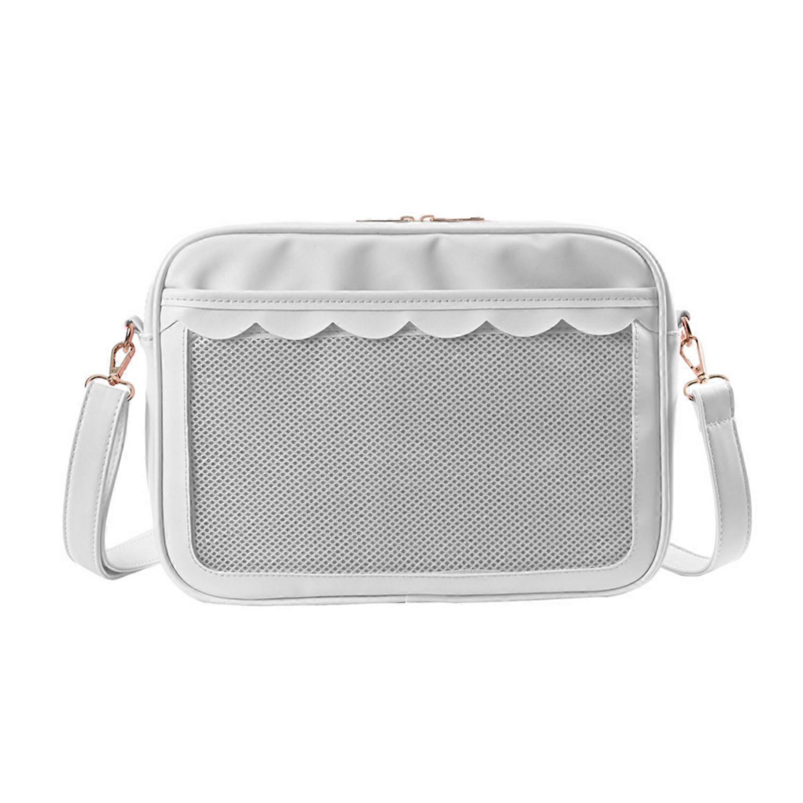 Japanese Harajuku Ita Bag for Women PU Transparent Pocket Itabag High School Girls Uniform JK Crossbody Shoulder Bag White