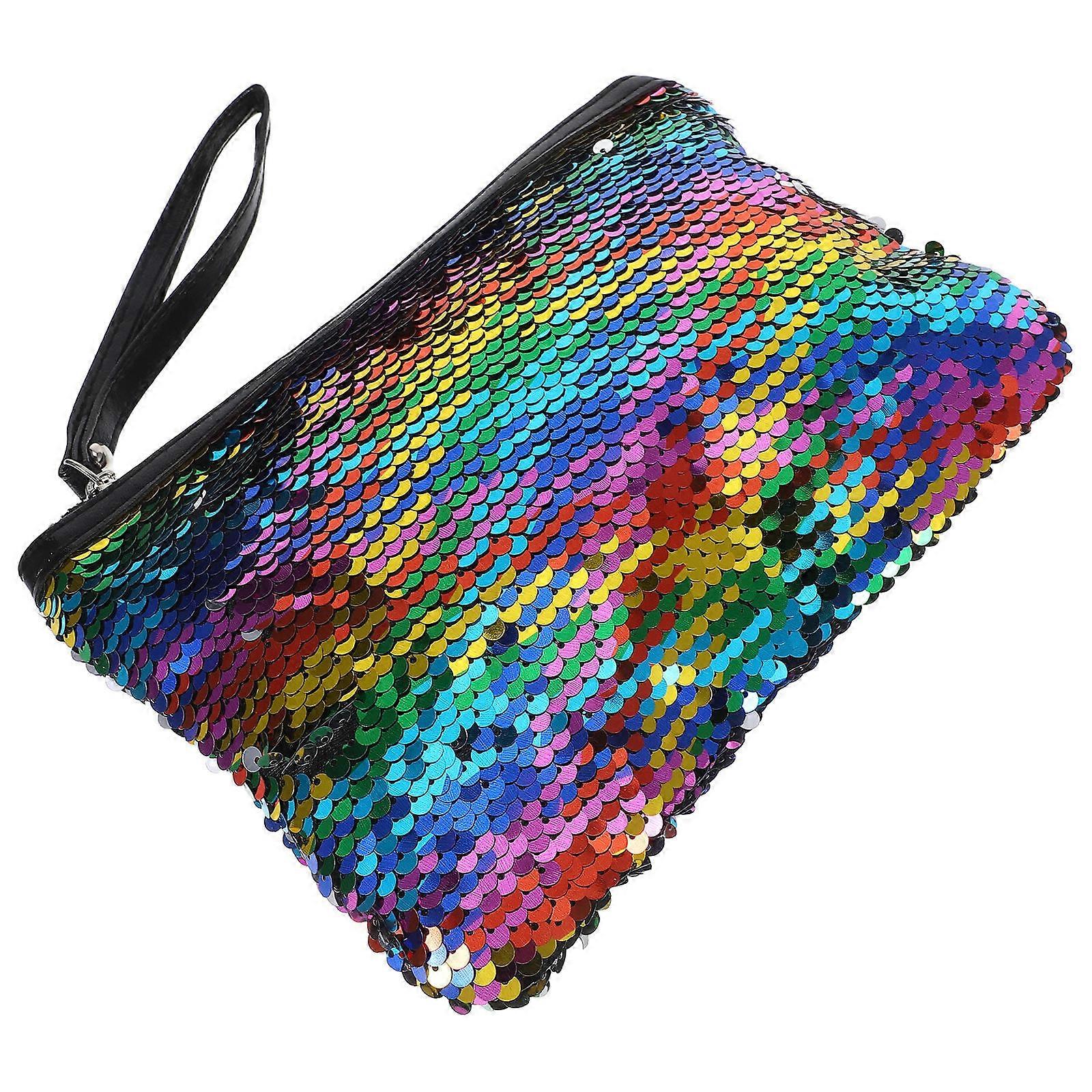 Handbag Makeup Bag Color Changing Paillette Cosmetic Bag Multi-colored Daily Use Zipper Protection 1Pcs