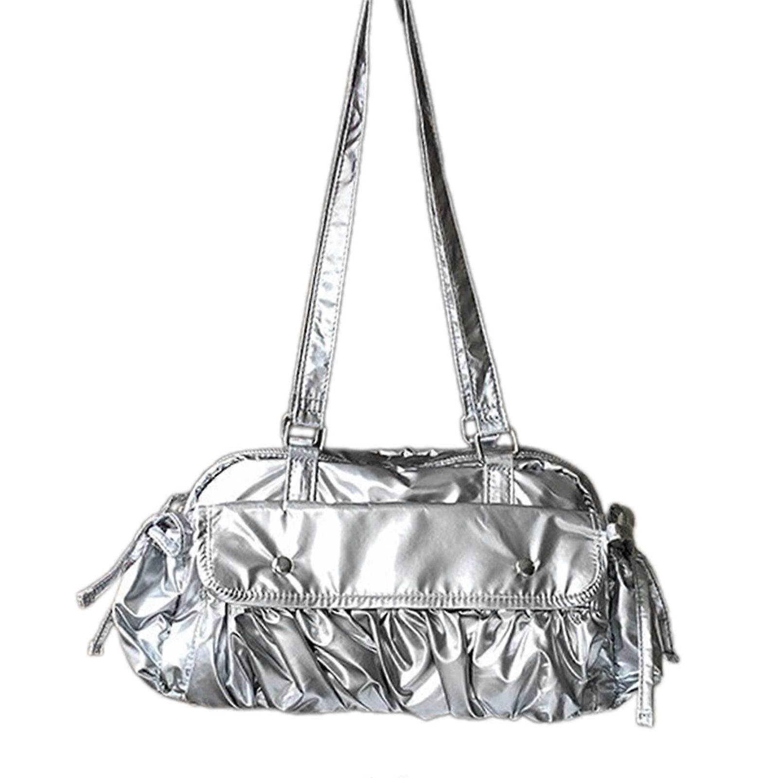 Large Capacity Pleated Handbag Fashion Nylon Underarm Purse Large Capacity Shoulder Bags Suitable for Girl Women Silver