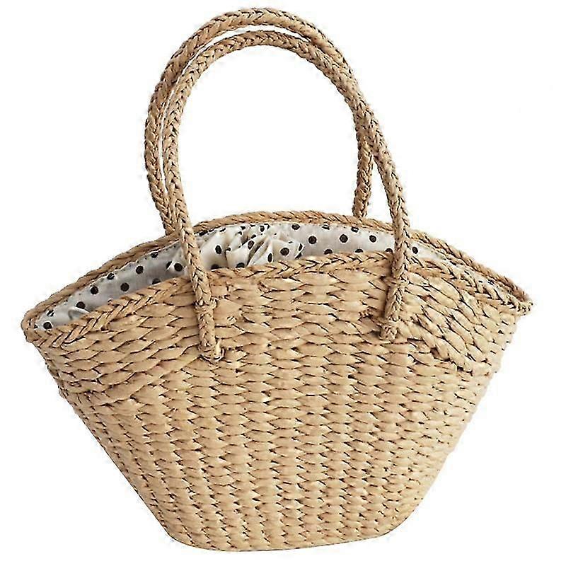 Women's Handbag Wicker Woven Ladies Shoulder Bag Beach Straw Woven Bag Large-Capacity Portable Dot L