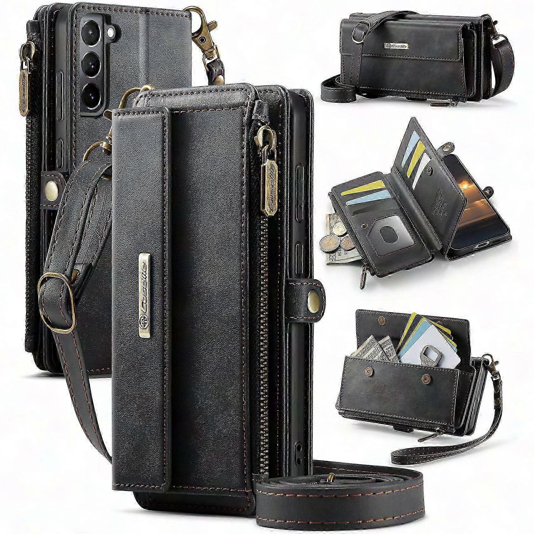 Samsung Galaxy S21 4G/5G Case CASEME C39 RFID Zipper Wallet Stand Leather Cover with Strap